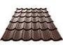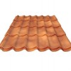 Металлочерепица — листы, изготавливаемые из стали различной толщины. Для защиты от коррозии они обработаны цинковым или гальфановым покрытием, а также слоем полимерных матовых или глянцевых красок повышенной устойчивости. Геометрия профиля металлочерепицы представлена большим разнообразием форм — самым популярным является Монтеррей (он полюбился покупателям за максимальное сходство с традиционной глиняной черепицей).